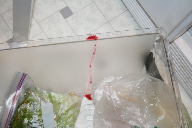 We couldn’t figure it out, as we followed it’s heinous trail from the beneath the crisper, up…