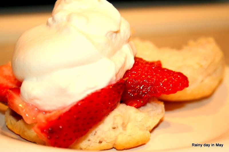 {Homemade Strawberry Shortcake with freshly whipped cream,