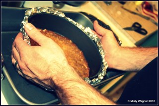 Meanwhile, wrap your pan WELL in foil. You want it tight, with no possible water breaches from the water bath.