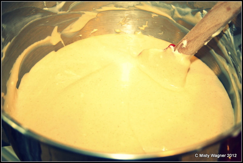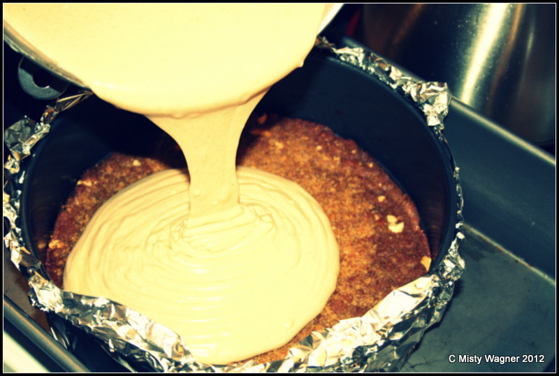 poor your heavenly, peanut butter batter onto your crust.