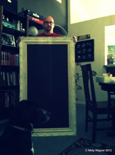 We need an after shot of your new 'do. Also, is Che holding up a chalkboard in a frame?